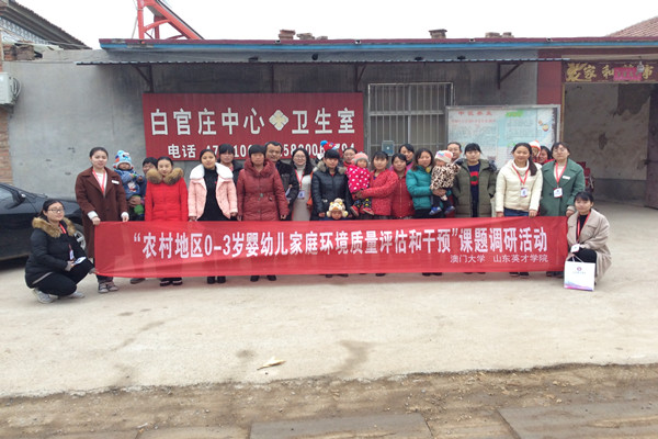 12月14日,我院6名科研兴趣小组学生在研究院丁骞老师的带领下赴山东省德州市临邑县临南镇四个农村地区进行为期两天的“0-3岁婴幼儿家庭环境质量的干预和评估”课题调研活动。该课题与澳门大学胡碧颖教授合作完成,此课题得到国家充足的经费支持以及学院领导的高度重视。