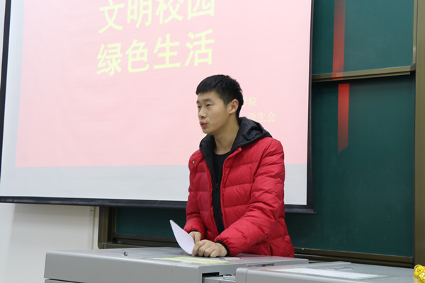 12月17日中午,学前教育学院于学前楼6004召开“文明校园,绿色生活”副书记恳谈会。基层团委学生会骨干参与了本次会议,学生会副主席张宇担任本次会议主讲人。
