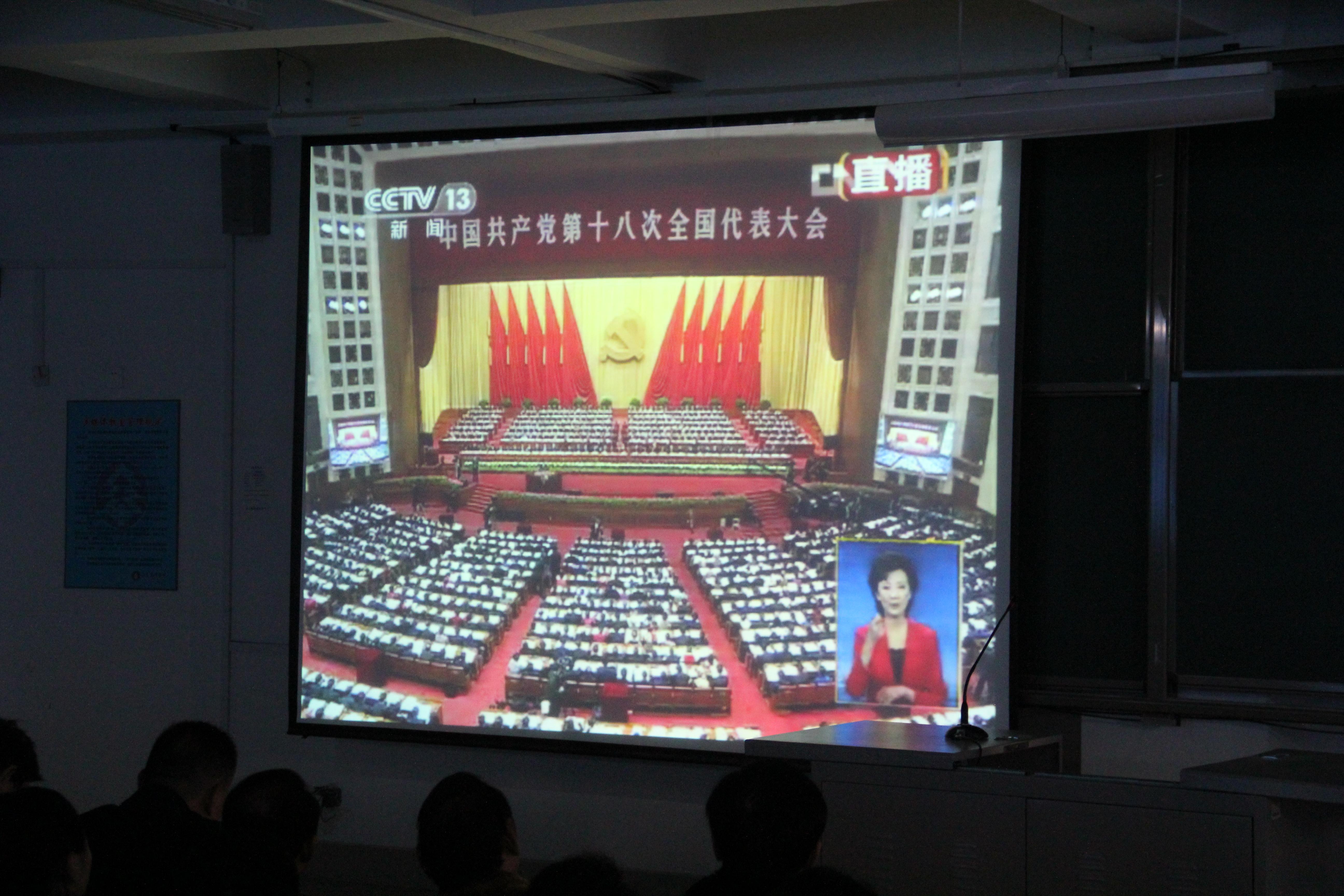 11月8日,举世瞩目的中国共产党第十八次全国代表大会在北京人民大会堂隆重开幕。上午9点整,我院北校区组织教师及部分学生代表在教学B楼300通过网络直播认真观看党的十八大开幕式,学院党委书记、院长夏季亭教授、副院长王兆良教授、张宗胜教授、综合办李萍主任、于宗先副主任、保卫办曹福华主任、马宗义副主任、总务办李建一副主任及二级学院领导认真聆听了胡锦涛总书记代表第十七届中央委员会作的报告