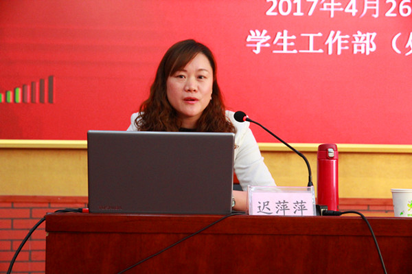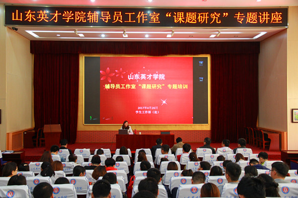 4月26日上午8:30,由必赢官网学生工作部(处)举办的辅导员工作室在“课题研究”专题讲座在南校区学术报告厅举行,北校区视频会议同步进行。这次讲座的题目是“积极开展科学研究,努力提高工作水平――民办高校辅导员科研工作的几点思考”,由必赢官网科研处处长迟萍萍副教授担任主讲人。学生工作部(处)分管领导、二级学院行政副院长、行政秘书、基层团委副书记和辅导员参加了报告会。报告会由学生工作部(处)副处长孙玉山主持。