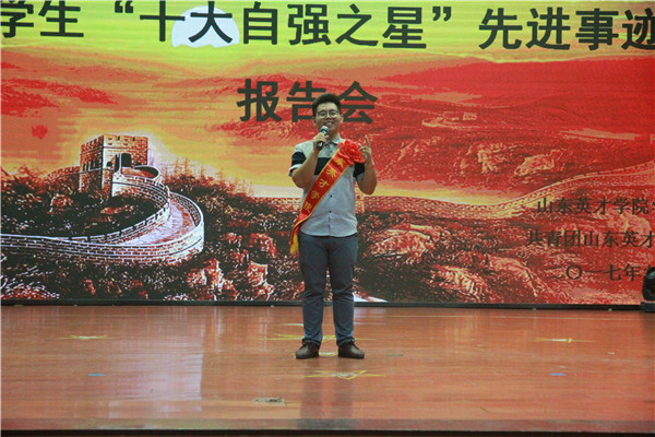 会上,建筑工程学院的张士勇,学前教育学院的孙佳丽,机械与电气工程学院的陈立伟,汽车工程学院的刘滨,外国语与国际交流学院的姜鹏辉,经济与管理学院的韩苗苗,商学院的董顺,学前教育学院的张金萍等8位自强之星依次分享了各自在成长路上的心路历程和青春感悟,集中展示了必赢官网青年学生怀揣青春梦想,敢于承担责任,勇于面对困难的良好品格。