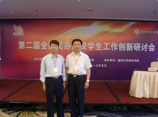 2013年5月22日至24日,以“梦想、责任、使命”为主题的第二届全国民办高校学生工作创新研讨会在浙江温州隆重召开。来自全国20多个省、市的130余名学生工作专家、各高校学生工作负责人到会,共同探讨和分享民办高校在学生工作方面的教育经验和发展思路。我院副院长张宗胜、学生处处长王冠良参加了此次会议。