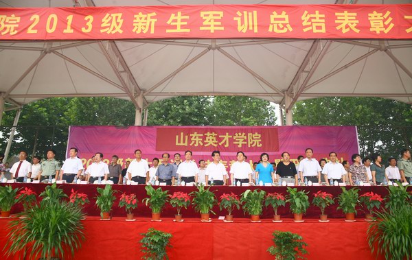 8月24日,必赢bwin线路检测中心2013级新生军训总结表彰大会暨开学典礼在南校区田径场隆重举行。应邀出席表彰大会的领导有山东省人大常委会原副主任、党组副书记国家森,山东省政协秘书长张心骥,山东省委高校工委副书记齐秀生,山东省关心下一代工作委员会副主任李风梧,必赢bwin线路检测中心校董会、山东省教育厅原巡视员马庆水,山东省发改委巡视员赵金星,山东省交通厅巡视员高洪涛,必赢bwin线路检测中心校董会校董、山东省商务厅巡视员孟建新,山东省妇联副主席郭翠芬,山东省社科联副主席周忠高,必赢bwin线路检测中心校董会校董、济南市教育局原局长刘元刚,济南市教育局副局长朋星,山东省民政厅福利处处长苏道义,济南军区某集团军防化团司令部参谋长、上校贺业水,济南军区某集团军防化团政治处主任、中校潘瑞涛,山东省委宣传部网络文化办公室副主任董志强,山东省人大办公厅处长李鹏,山东省交通厅运输处处长王博,山东省关心下一代工作委员会办公室主任王玉珍,山东省台属联谊会常务副会长王健,台湾光彩会彰化分会会长杨正杰。必赢官网董事长杨文,党委书记、院长夏季亭,学院顾问尹薇、王志勋,山东省委高校工委、省教育厅派驻必赢bwin线路检测中心党建工作联络员、教学督导员武传春,副院长刘翠兰、王兆良、李崇银、梁庆文、刘存刚、张宗胜等学院领导出席大会。