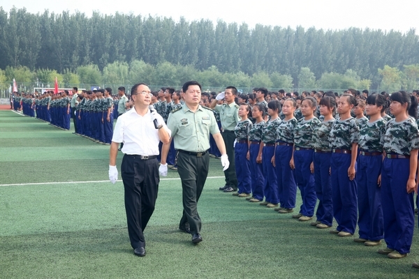 2013年8月25日,北校区2013级新生军训总结表彰大会暨开学典礼在北校区田径场隆重举行。应邀出席大会的领导有山东省政协副主席栗甲,山东省人大常委会副秘书长、办公厅主任赵瑞林,山东省政协副秘书长赵孝为,济南市委常委、济南警备区政委王兴树,山东省老龄委主任兼办公室主任丁希滨,山东省政府参事、学院校董会校董包文辉,山东省工商局巡视员、学院校董会校董张铁军,山东省社会科学联合委员会党组书记、副主席杨瑛,山东省卫生厅党组副书记、副厅长袭燕,山东省委统战部副部长李法信 ,山东省政协科教文卫体委员会副主任张长安,济南市政府副秘书长杜平, 济阳县县委书记祖爱民,济南军区第26集团军防化团司令部参谋长,上校贺业水,山东省高校工委组织处处长冷健,济阳县崔寨镇党委书记张方,济南军区第26集团军防化团政治处主任、中校潘瑞涛,第十届中国艺术节山东省筹委会大型活动部副部长、省文化厅戏剧创作室主任张积强 ,济阳县崔寨镇镇长董法明,学院校董会校董、山东山大华天科技股份有限公司董事长李宇兵, 学院董事长杨文,党委书记、院长夏季亭,山东省委高校工委、省教育厅派驻必赢bwin线路检测中心党建工作联络员、教学督导员武传春,山东省人大教科文卫委员会办办公室主任李建军,山东省政协科教文卫体委员会办公室主任蒋永涛,山东省卫生厅医政处处长马立新,山东省委统战部党派处处长孙中亮,山东省经信委交通处副处长张广招,学院校董会校董、济南校友会会长、济南巨细通营销策划有限公司董事长赵思刚,学院副院长刘翠兰,李崇银,梁庆文,刘存刚,王兆良 ,张宗胜,各界新闻媒体记者、学院各二级学院院长、各职能部门主要负责人、全体教职员工与北校区全体新生共同参加了大会。