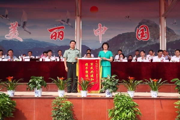 学院副院长张宗胜宣读了《关于表彰军训期间获奖单位和个人的通报》。表彰了2013级新生军训项目12个获奖单位,35个军训优秀训练标兵。由主席台就坐领导分别为获奖单位及个人进行颁奖,颁奖仪式结束后,为感谢济南军区承训部队对学院新生军训工作的付出与大力支持,学院董事长杨文亲自向部队领导赠送了锦旗。以此勉励获奖单位和个人发扬成绩,再接再励,在今后的工作、学习、生活中不断进取,勇于拼搏,取得更大的成绩。