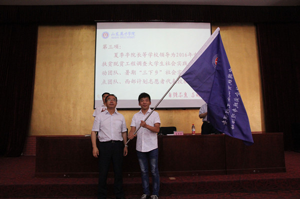 夏院长为中国扶贫脱贫工程调查大学生社会实践专项活团队授旗