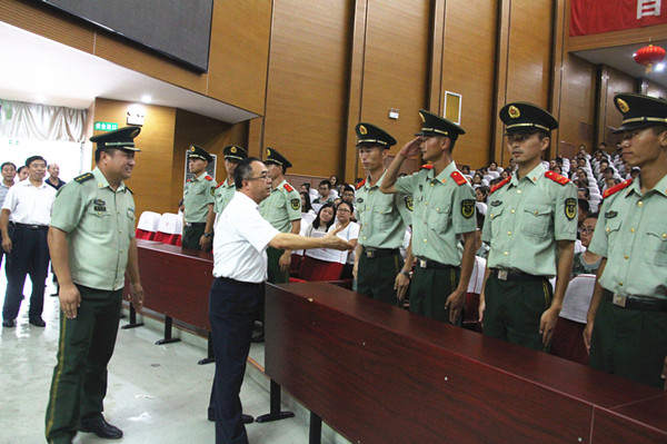 8月17日上午,必赢bwin线路检测中心党委书记、校长夏季亭教授,副校长李崇银教授,副书记、副校长、军训团长兼政委张宗胜副教授,学校军训领导小组、军训团办公室、承训部队领导,分别到南北校区军训现场,亲切看望慰问军训教官和2016级军训新生。
