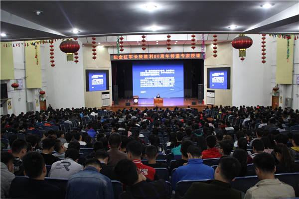 王教授以习近平总书记在纪念长征胜利80周年重要讲话开篇,点明了长征的历史背景和伟大意义,描述了大革命失败后的白色恐怖情形和土地革命之初的三大起义,让同学们深深的感受到中国共产党人的大无畏精神和坚定的理想信念。王教授声情并茂地讲述了留守南方的红军游击队的艰苦岁月,令在场同学十分动容。在“遵义会议”部分,高度赞赏了以周恩来同志为代表的中国共产党人实事求是精神,勇于承认错误,支持并确立毛泽东同志的正确领导。“转战西南”部分,讲解了毛主席用兵真如神的几个典型案例,讲述了雪山高原的艰险环境和草地沼泽的生死考验,以及红军战士的革命英雄主义精神。通过集中展示长征的历史画卷和经典史实,全面诠释习总书记的重要讲话,升华了长征的伟大历史地位和重大现实意义。