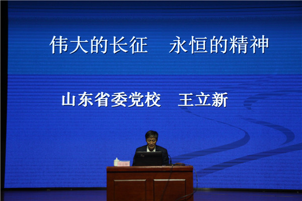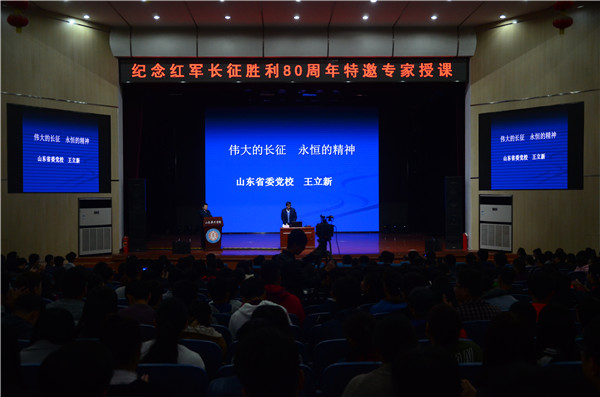 在纪念红军长征胜利80周年之际,必赢bwin线路检测中心举办“讲好中国故事、传唱红色歌曲”系列活动讲座。2016年10月27日,特邀中共山东省委党校党史教研部主任王立新教授为我们进行“伟大的长征、伟大的精神”主题报告。必赢bwin线路检测中心党委副书记、副校长张宗胜,党委办公室、学工部、各二级学院领导,基础部思政教师及学院1000余名学生现场聆听了报告。