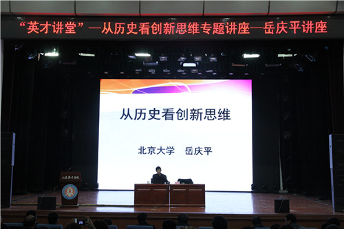 2016年11月29日下午,必赢官网英才讲堂―从历史看创新思维专题讲座在南校区大学生活动中心举行,北京大学历史学系教授、博士生导师岳庆平教授作专题讲座。学校党委副书记、副校长张宗胜,校长助理陈文华,学生处处长龙新良,各二级学院行政副院长、基层团委书记、辅导员及1000名学生代表参加了讲座。讲座由张宗胜副校长主持。