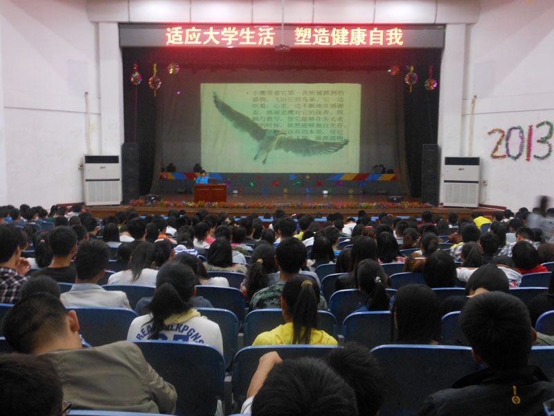 10月11日晚,学生处大学生心理健康教育咨询中心在南校区大学生活动中心开展了第一场“2013级高职学生心理健康教育专题讲座”。本次讲座由学生处大学生心理健康教育咨询中心袁娟娜老师主讲,机械学院、计算机学院、外国语学院及商学院2013级高职学生参加了讲座。