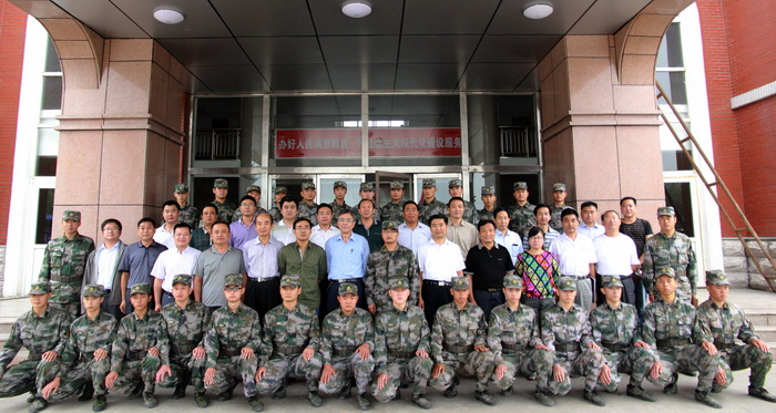2014级新生国防教育和军训领导小组与济南军区防化团的35名承训官兵合影