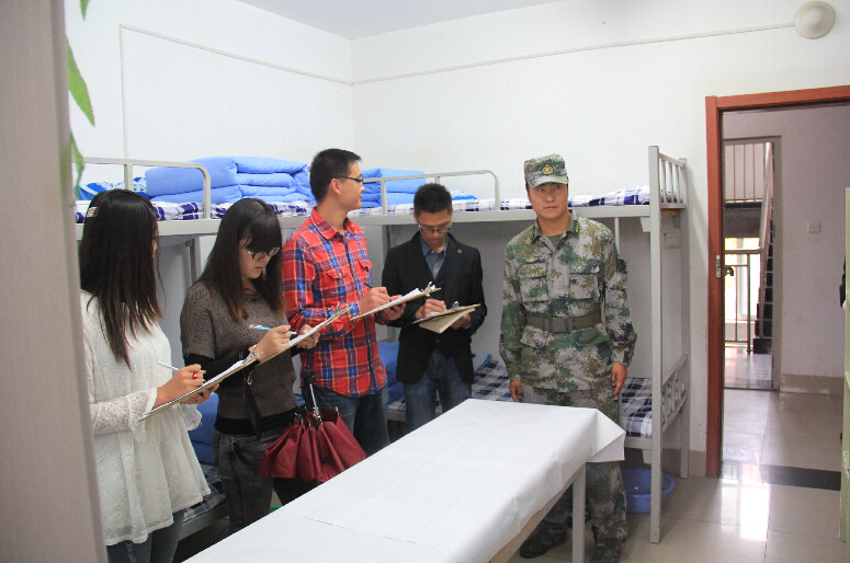 为检验2014级新生的军训效果,丰富学生军训生活,提高学生宿舍内务管理水平,培养学生“自我教育、自我服务、自我管理”的能力。9月16日上午,学生处会同军训团教官组织北校区各二级学院的军训辅导员对参训新生宿舍内务情况进行了检查评比。