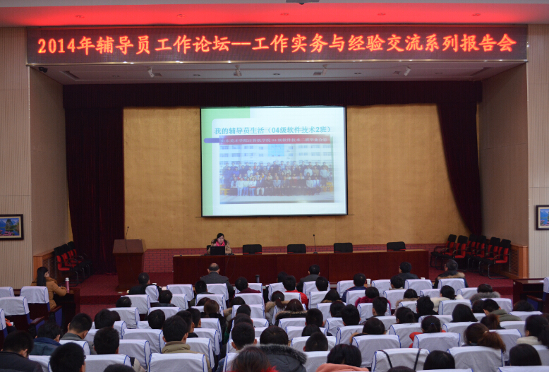 根据2014年辅导员工作论坛安排,在学工部周密安排、组织协调下,在各二级学院大力支持与配合下,12月25日―31日,必赢官网2014年度辅导员工作论坛--工作实务及经验交流系列报告会在南北校区同时进行。南、北校区二级学院行政副院长、行政秘书、基层团委书记、全体辅导员、学工部、团委全体人员参加了本次活动。学工部韩芳丽副处长主持了报告会。