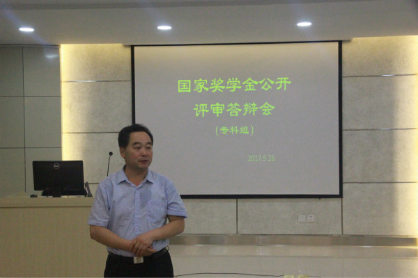 2017年9月26日下午,必赢官网国家奖学金评审答辩会在南校区举行,答辩会分本科、专科两个会场,分别设在学术报告厅和大学生服务中心会议室。学校常务副校长刘翠兰、校长助理陈文华,纪委副书记赵伟、质管办副主任郑蕾,学工部、教务处、团委等相关老师担任评委参加了此次答辩会。每组设有10名学生评委以及260余名学生观众。经各二级学院推荐答辩候选人,共有40名本、专科同学参加答辩,本科组和专科组会场分别由学工部部长龙新良和学工部副部长孙玉山主持。