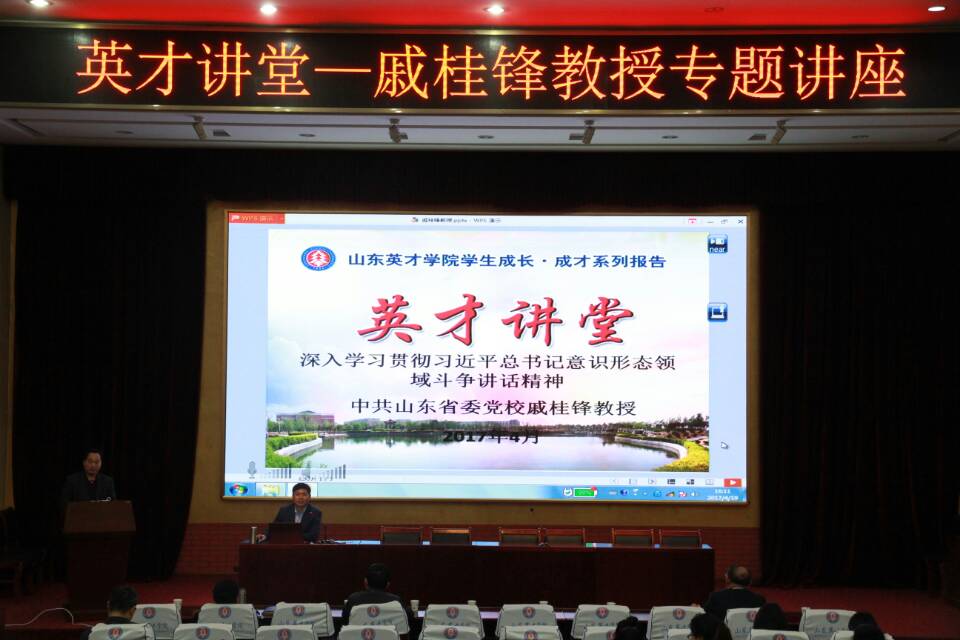 2017年4月19日,英才讲堂――深入学习贯彻习近平总书记意识形态领域斗争讲话精神报告在学术报告厅召开,学生工作处(团委)、各二级学院党总支专职书记、基层团委书记、全体辅导员、基础部马院教师等参加了会议。党委委员、学生工作处(团委)副处长孙玉山主持了报告会。