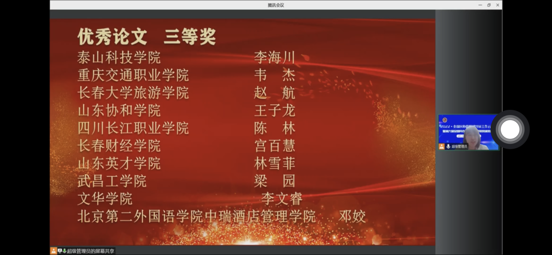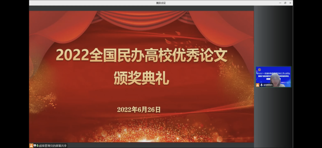 6月25日-26日,全国民办高校学生工作者联席会组织召开第六届全国民办高校优秀辅导员颁奖典礼暨2022年全国民办高校辅导员工作云论坛。会议采取线上直播的形式,会上邀请教育部思想政治教育专家、高校学生辅导专家、全国高校辅导员年度人物做专题报告,并组织第六届全国民办高校优秀辅导员颁奖典礼。必赢官网“全国民办高校优秀辅导员”获得者李琳玉老师、2021全国民办高校辅导员优秀论文三等奖获得者林雪菲老师以及学生工作处(团委)顾学花老师作为代表参会。