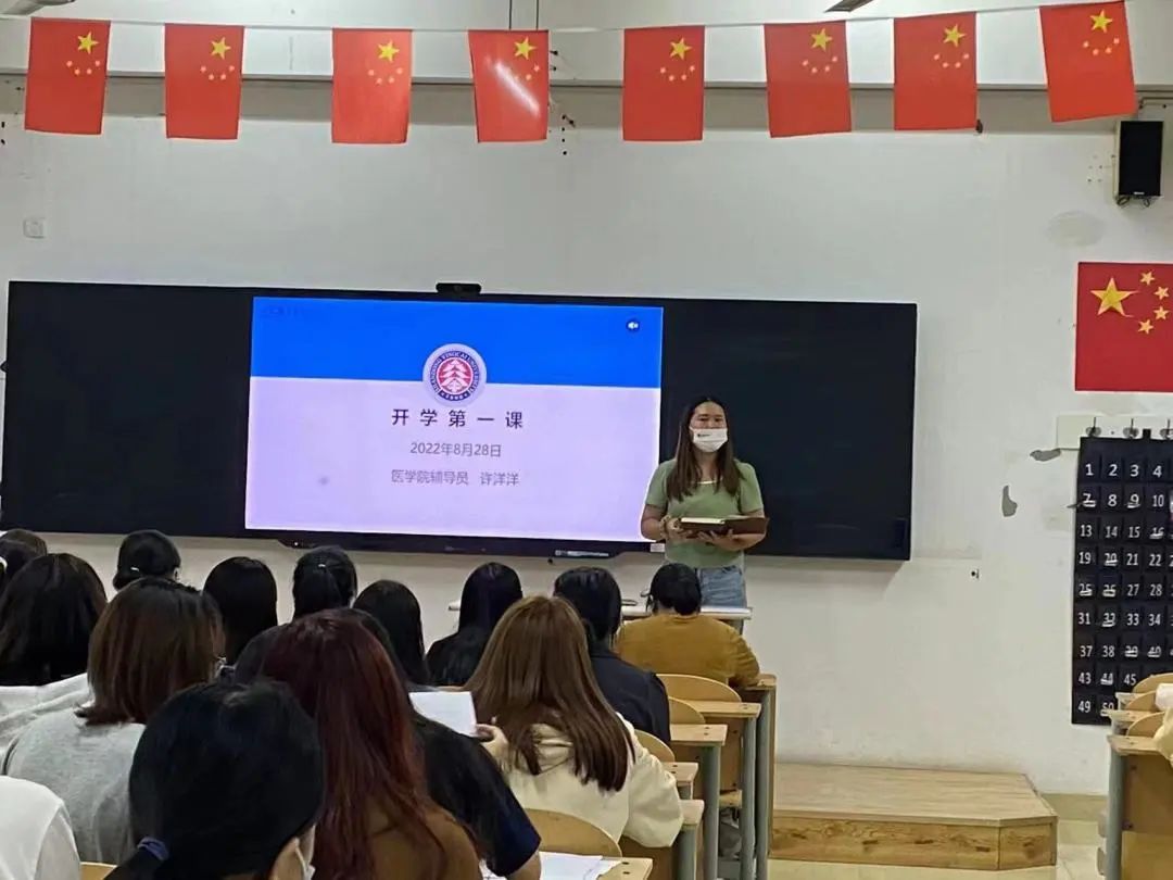 各班纷纷围绕校园疫情防控要求、返校情况统计、日常安全教育、心理健康教育、“喜迎二十大、永远跟党走、奋进新征程”理想信念教育、学风建设等方面开展“开学第一课”,引导学生调节返校后的校园生活习惯。学生宿舍整洁有序,宿舍管理员工作认真,为学生提供了优良的休息环境。课上学生学习氛围浓厚,教师讲解细致。学生工作处(团委)的老师们走到学生中去,与学生在一起,迎接2022年秋季新学期的开启。