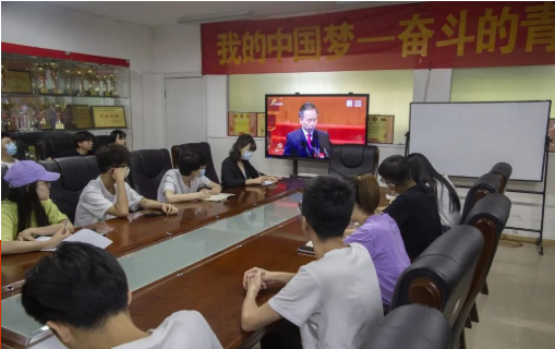 5月28日,中国共产党山东省第十二次代表大会在山东会堂隆重开幕。李干杰书记代表十一届省委向大会作了题为《牢记嘱托走在前 勇担使命开新局 为建设新时代社会主义现代化强省而努力奋斗》报告。为了学习报告内容,把握当今机遇,直面前途挑战,校团委组织校级学生组织骨干在校团委会议室学习会议精神,引发同学们热议。