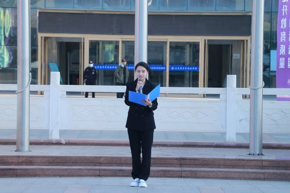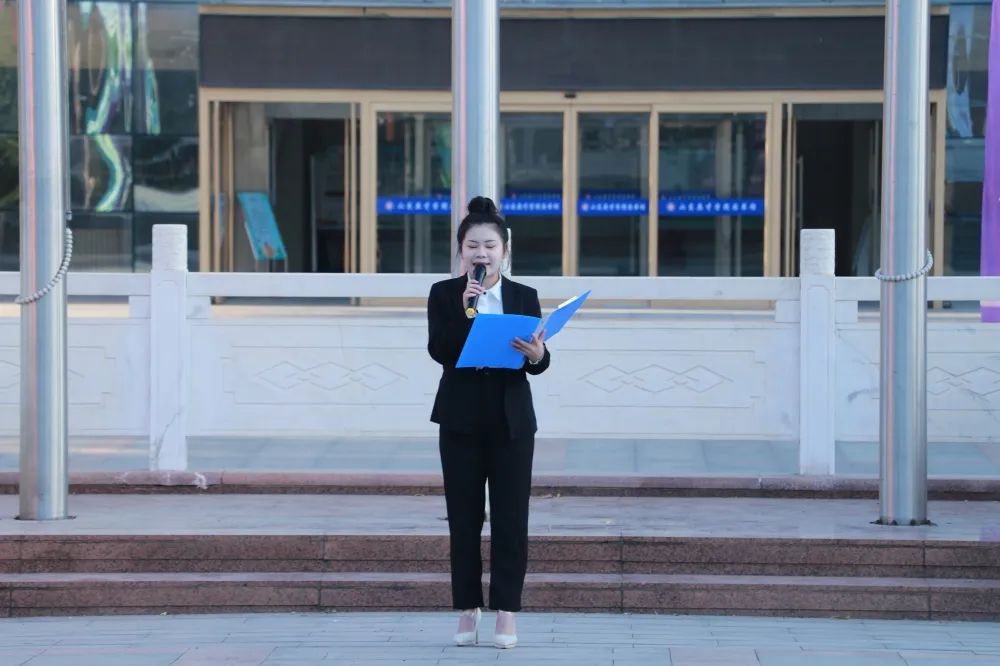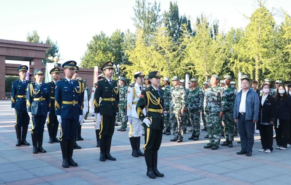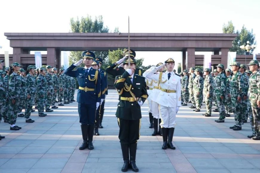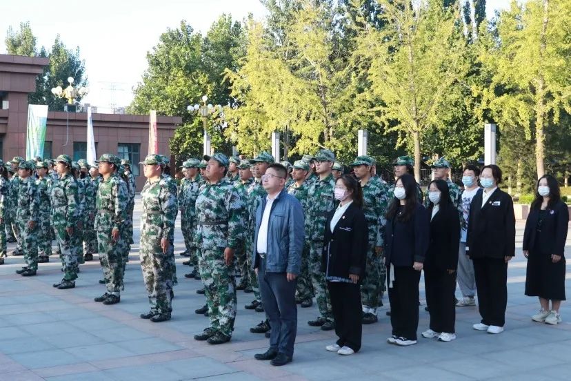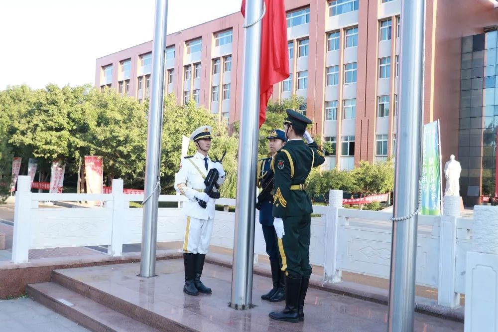 朝阳初升,其道大光。现场学生列队整齐,庄严肃立,国旗仪仗队成员身着正装,踏着整齐沉稳的步伐护送国旗。现场师生神情庄严,向国旗注目行礼。伴随着激昂雄壮的国歌,鲜艳的五星红旗冉冉升起,飘扬在学校的上空。