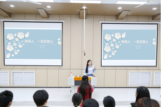 讲座伊始,李颖主任通过引用实际案例,强调了从事新闻专业首先应重视宣传思想、政治素质的培养和建立政治意识。她指出,这不仅是新闻人的基石,更是成为一名合格新闻人所必须具备的基本素质。同时,新闻人还应具备以不变应万变的学习能力、敏锐的洞察力以及基本的采写技巧等。这些能力是新闻行业中的必备要素,也是每个新闻人应当掌握的基本技能。随着媒体行业的不断发展,新闻人的就业方向也日益多样化。李颖主任还从新闻行业、企事业单位公务员、文化传播公司、自媒体人四个大方面为在座学生描绘了一幅就业蓝图。她表示,新闻专业的学生适应社会的能力非常强,但只有保持自己的学习能力,夯基垒台,才能终身受益。