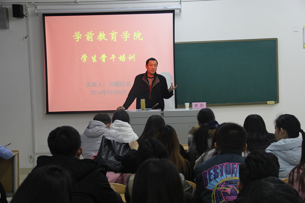 2016年12月6日晚5时30分,我院基层团委学生会在学前楼6003召开学生骨干培训会议。莅临本次大会的领导有学前教育学院行政副院长许鹏和基层团委书记陈文双,基层团委学生会各部门骨干参加了此次会议。