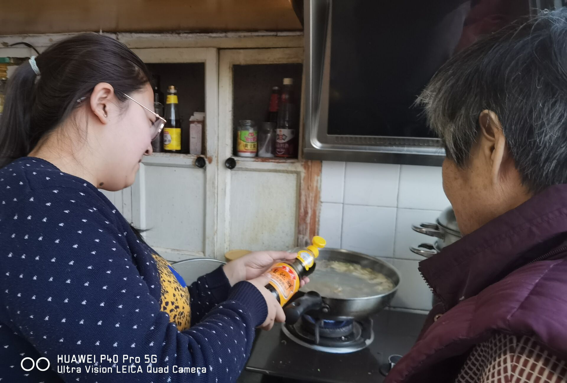 打扫完卫生之后,团队又分成了两组,一组为老人们送上水果和补品并对老人们进行关心和简单问候,另一组向这里的负责人了解这个公寓的一些基本情况。