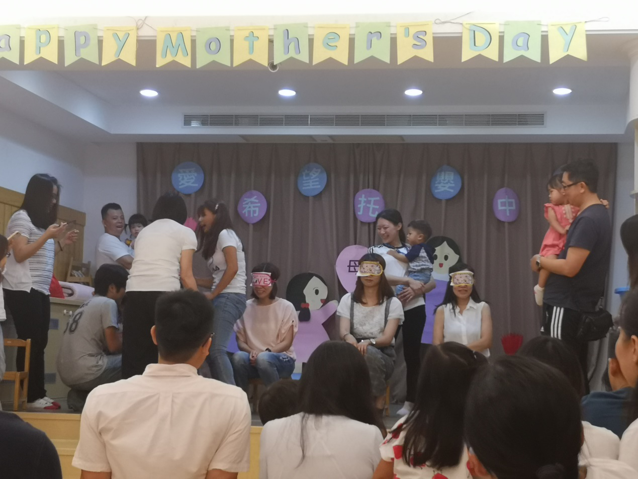 不仅如此,同学们还准备了一个亲子游戏叫做“猜猜宝贝在哪里”,在游戏中妈妈们蒙上了眼睛,通过摸小朋友们的小手或是脸颊,凭借着对自己孩子的了解猜出哪个是自己的“宝贝”。整个游戏中参与者都比较热情,参与度还是很高的,这个游戏获得了家长的一致好评,在游戏中,妈妈们更加了解了自己的孩子,并且加深了母亲与孩子之间的关系。