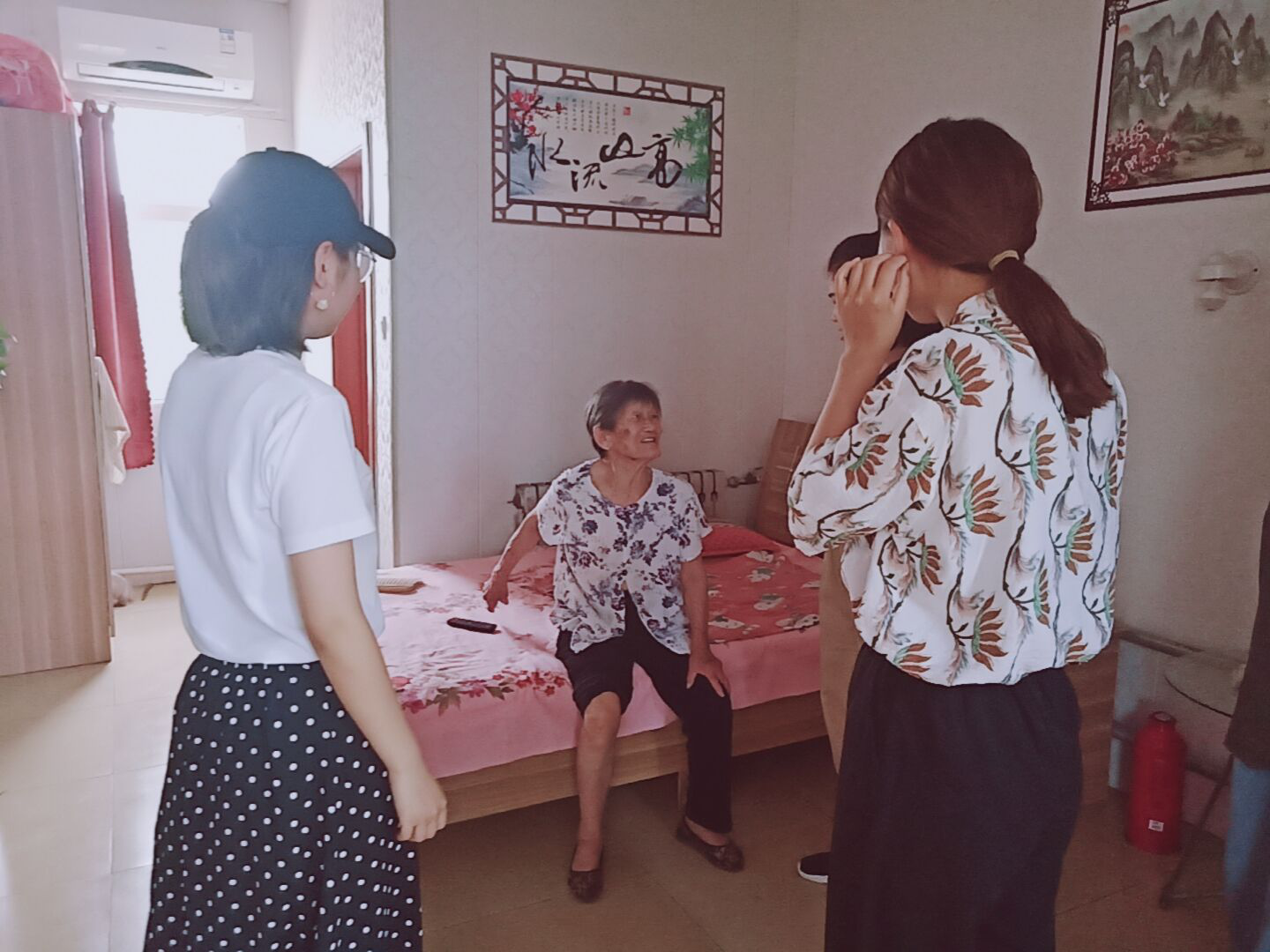 在敬老院里,负责人向我们讲解到:敬老院里大多数的老人生活不能自理,多数患有神经官能症或老年痴呆症等疾病,给护理工作带来极大的困难。老人们一看到冒着酷暑赶来看望他们的学生,立刻关心起来,拉着我们的手嘘寒问暖,十分关心我们各方面的情况,体现出了老一辈对年轻一代殷切的希望和关心。