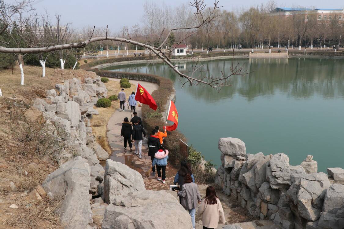 本次活动旨在学习雷锋榜样,弘扬劳动精神。基层团委学生会主席张凯为此进行了发言,他由衷希望通过本次活动的开展,在我们校园里形成“人人是雷锋,时时学雷锋”的良好氛围。紧接着,在张凯的带领下,学生会全体同学们进行了一系列的校园卫生清扫活动。在鲜红的旗帜下,队员们手持清洁工具,清扫了湖边小道,清理了难缠的口香糖。他们不怕脏,不怕累,热火朝天地完成清洁任务。经过一中午的努力,大家圆满完成工作。
