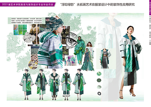作者:崔陆梦 作品名称:浮踪绿影水拓画艺术在服装设计中的装饰性应用研究