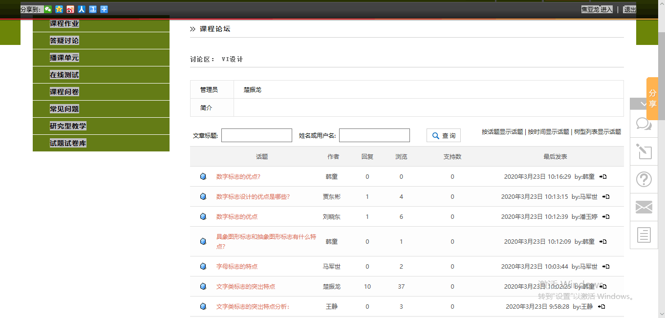 一句古代的谚语,“足不出户便知天下事”,用在我们身上,让在家不能上学的我们,获得了充实,至今上课已四周,同学们都慢慢的适应了这种新颖的教学方法。也没有因为老师的监督而松懈了自己的学习,在课上积极回答老师的问题,认真听讲,在课后也能按时完成自己的作业,而成为“主播”的楚老师完成了学科授课,上课很积极,课件准备很用心,以及优慕课的课程作业、答疑讨论、播客单元、在线测试等。