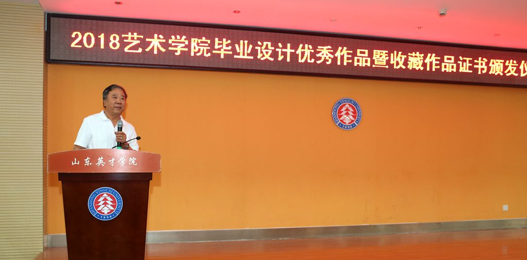 活动开始,由朱于芝教授介绍本次活动流程,并代表全体教师向毕业生表示衷心祝贺。随后,艺术学院党总支副书记王志涛宣读2018届优秀毕业设计、荣获收藏证书的学生名单及优秀毕业指导教师名单,艺术学院领导和特聘教授为获奖毕业生、老师颁发证书,并对师生们为毕业设计展的努力与付出给予肯定。