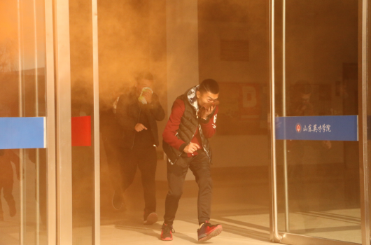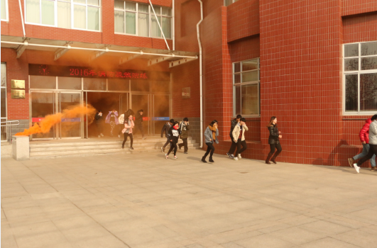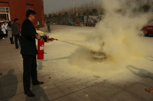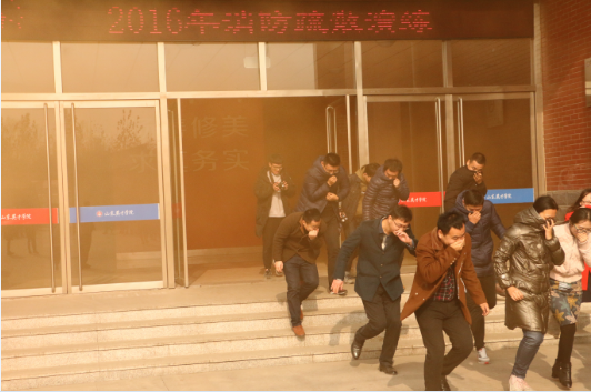 当天中午,学生们满怀好奇与欣喜的心情,在学生会的组织下到艺术楼前集合。集合完毕后,刘亚东院长就火灾的危害、诱发原因、高楼火灾自救、如何正确使用电器设施设备、如何正确使用消防栓、灭火器及火情紧急情况处置、火灾应急疏散常识等消防安全知识进行了详细讲解。随后,王志涛书记组织学生们在艺术楼二、三、四层现场模拟了消防安全疏散演练。学生们在辅导员老师的指挥下,达到指定地点,当在楼中听见火情警报的哨声时,能够沉着应对,先用水蘸湿事先准备好的毛巾,捂住口鼻,井然有序地向楼外疏散。随后,同学们来到楼前广场集合,观看并学习灭火器的使用方法。保卫处马宗义处长、学院领导和辅导员老师们依次亲身示范,学生们也纷纷积极参与。演练活动在同学们的积极配合下得以顺利进行。最后,刘亚东院长又对此次演练活动进行总结评价,提出活动过程中出现的问题,提醒同学们在面对消防安全问题时,能够沉着应对,用正确方式疏散逃生,强化了同学们的消防安全意识,提高了消防安全中的应变能力。