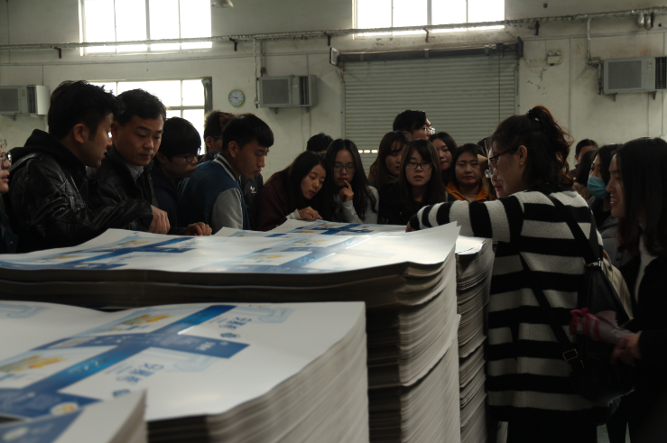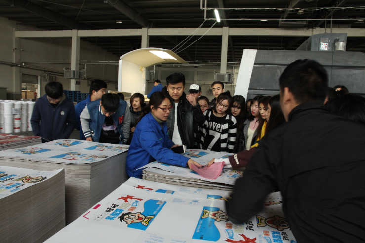 为提高学生的实践能力,激发学生的学习热情,2017年3月28日下午,在艺术学院党委书记刘亚东的带领下,视觉传达专业教师姚旭鹏和辅导员王晶组织艺术学院13级本科视觉传达专业全体学生和13级各专业毕业班的班级骨干,到济南远达彩印包装有限公司进行参观学习。