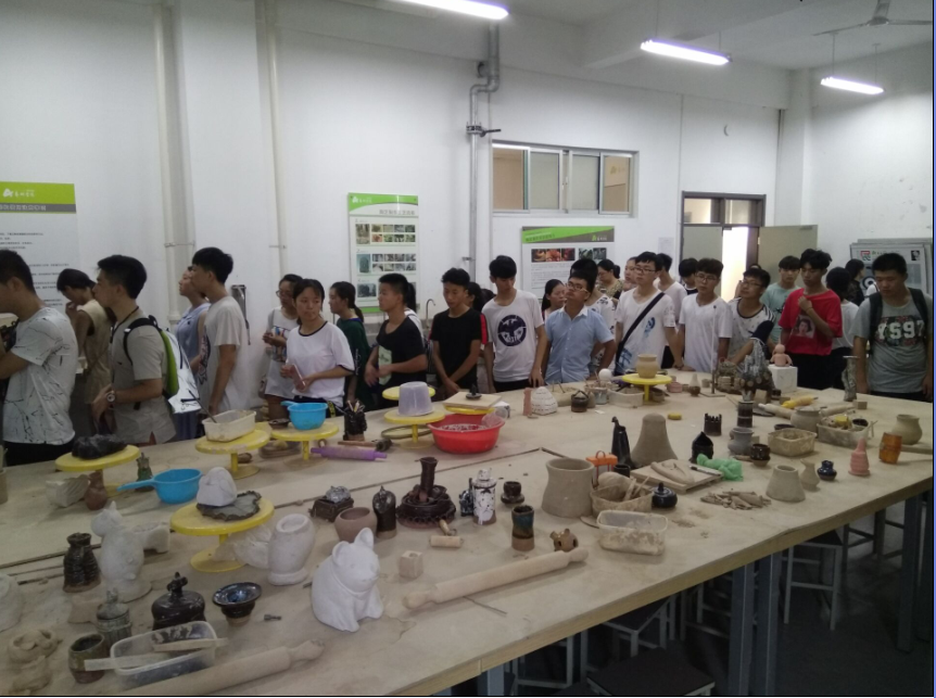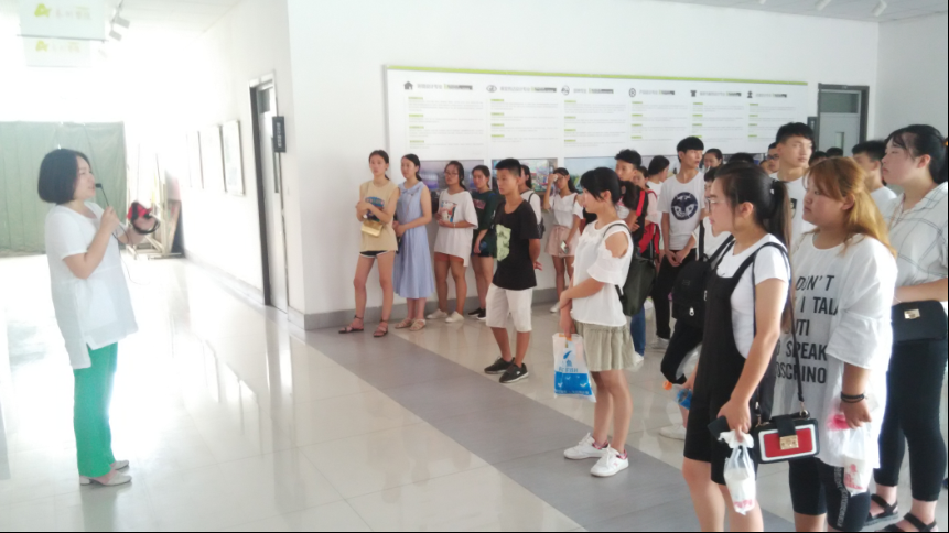 上午9:30分,艺术学院2017级新生怀着喜悦与憧憬的心情,准时来到艺术楼大厅集合。首先由朱于芝副院长、辅导员老师向同学们表示热烈欢迎,希望大家能够尽快适应崭新的大学生活。接下来,朱于芝副院长亲自带领新生们参观实训室、机房和画室,并将各专业的重点、优势、实训器材功能、学院荣誉、展出的优秀作品等作详细介绍。各实训室摆放着2017届毕业生的优秀毕业作品吸引大家驻足观看,争相拍照留念,唯恐错过学习的机会。虽然天气闷热,但学生们井然有序地跟随朱院长参观,认真聆听讲解。参观的学生队伍中,有几名家长随行,在他们喜悦的表情和激动的言辞中,足见对学校办学条件、环境以及领导、老师的热情态度表示认可与赞赏。