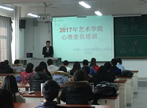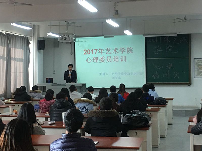艺术学院党总支副书记刘亚东亲自讲授心理委员的重要性,通过近年来各高校发生的由于心理问题导致的负面事件,来强调心理委员一职的重要性。他列举了近十件真实事例,生动形象、有理有据地反复强调学生心理安全影响社会稳定、校园和谐、家庭幸福和班级团结,发人深省。提醒各班心理委员一定要认真负责,做好日常的“侦查工作”,及时发现同学内部存在的问题,及时上报、及时解决,做好辅导员老师的得力助手。