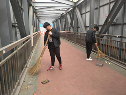 在活动过程中,学生志愿者们首先在指定地点校外天桥区域集合,每人手中拿着打扫工具,分配到具体任务后,有组织、有纪律的在天桥进行卫生清洁工作,将路面垃圾一扫而净。雷锋曾说过:“把有限的生命投入到无限的为人民服务中去。”或许,不是每个人都能够成为雷锋,但同学们可以尽最大努力做自己力所能及的事情。在集体的努力下,原本垃圾乱飞的区域变得整洁,给过路人带来一个更加舒适的卫生环境。