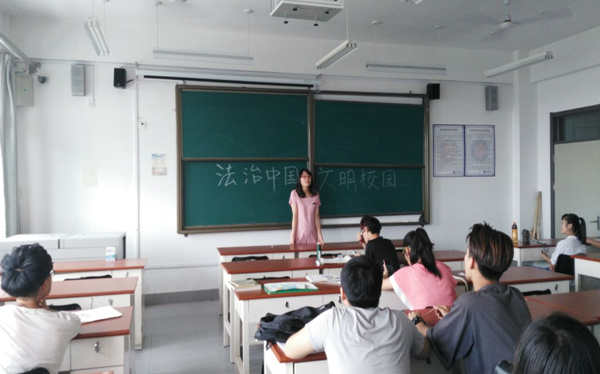 教育班会现场(三) 为深入开展法制宣传教育,弘扬社会主义法治精神,进一步培养师生的法制观念,努力构建和谐、平安、文明校园。艺术学院结合自身情况,围绕“法制中国,文明校园”这一主题开展了一系列法制教育活动。