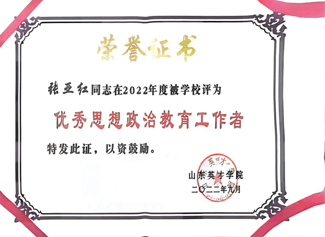张亚红,中共党员,泰国斯坦福国际大学教育学硕士,2016年加入必赢bwin线路检测中心从事辅导员工作,现任必赢bwin线路检测中心医学院大三年级长。入职以来,带过的班级涵盖2014级-2022级专升本、本科、高职等多个类别,累计1000多名学生。曾荣获2022年必赢bwin线路检测中心优秀辅导员”、“优秀个人”、“就业工作先进个人”、2023年山东省“三下乡”社会实践优秀指导教师,优秀团务工作者、公寓管理先进个人、招生工作优秀先进个人、2024年度十佳辅导员等荣誉称号,成为学生成长路上的引路人、贴心人和护航者。