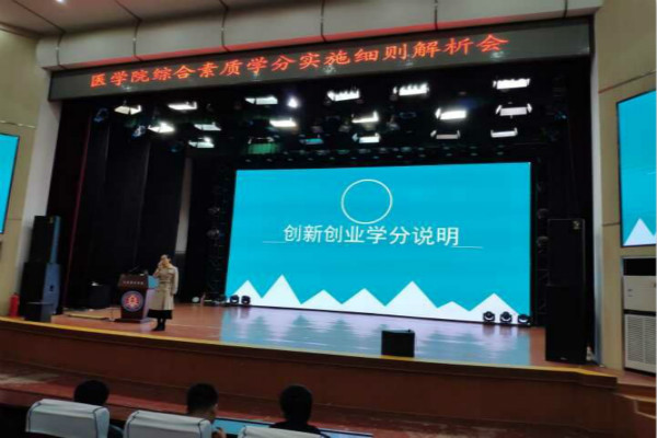 注教育改革提高教学质量。会上,武玉兴院长首先带领大家学习了习近平总书记的重要讲话:"创新教育发道路,培养德智体美劳全面发展的社会主义建设者和接班人。国以人立,教以人兴,教育是国之大计"。紧接着,武院长说,加强品德修养,教育引导学生培育和践行社会主义核心价值观,踏踏实实修好品德,成为有大爱大德大情怀的人,是在校大学生必须学习的品质随后,武玉兴院长向与会人员详细讲解了医学院学生综合素质学分实施细则。武院长以PPT的形式分别从总体要求、公益劳动、社会实践、素质发展和创新创业五个方面进行解说。在说到综合素质学分实施细则时,武院长向大家明确了本科(含普通本科、专本套读、应用本科)与高职学生在公益劳动、社会实践、素质发展、创新创业等方面所修学分的具体要求。武院长说到,综合素质学分代表了大学生的综合素质,学分的获得能够促进大学生在德智体美劳全面发展