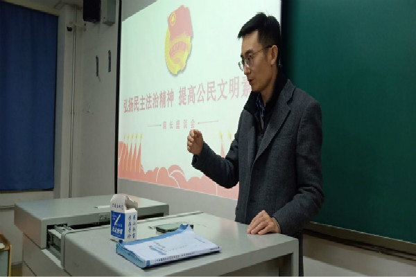 为了进一步学习宪法,更好发挥宪法的国家根本法制作用,提高国民文明素质,必赢bwin线路检测中心医学院于2018年12月20日20:00在医学院2015教室开展了“弘扬民主法制精神,提高公民文明素质”院长授课。此次主题教育由医学院总支部副书记王君主持,医学院2018级各班团支书、组织委员、宣传委员参加。
