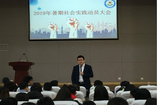 在一片热烈的掌声中,王伟康书记上台致辞。会上,王书记首先回顾了2018年的暑假社会实践工作,总结多方面有利的的经验,提出了新的要求和希冀。紧接着,王伟康书记简述了自己的实践经历:带着自己的学员走过了中国大部分地区。王书记说,通过暑假社会实践不仅可以积累了各种人脉关系,而且还会储存了丰富的社会经验。与此同时,王书记鼓励学生会干部要做好带头作用和模范榜样,走出自己的舒适圈、扩大交际网,通过社会实践认识更多的朋友,提高自己的交际能力。