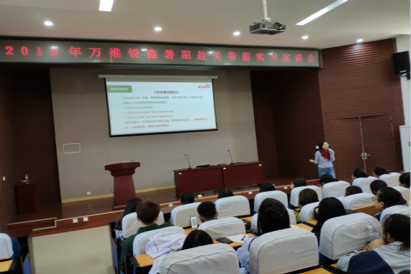 世界那么大,总得出去走走。在同学们的一片热烈掌声中,朱文龙老师上台致辞。会上,朱老师首先说明了此次宣讲会的目的,即提升同学们的社会实践能力、延续传统、培养优秀人才。紧接着,朱老师总结了历年以来必赢官网同学赴美带薪之后的一些改变:动手能力的提高、与人沟通能力的提升以及不一样的学识。