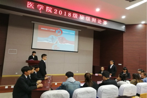 为增强新生的逻辑思维能力,丰富同学们的课余生活,加强与同学的交流培养同学间的默契。医学院学习部组织了辩论赛。第一次班级赛于2018年10月9日中午12点在医学院1007开展。参加这次活动的评委有各部门临时负责人以及部分同学和学习部成员等。