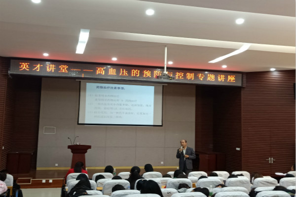 讲座初期,卢传华院长首先讲述了高血压是一种以体循环动脉压持续增高为主要表现的临床综合征以及大家应该如何预防高血压。此外,卢传华院长还为现场人员分别从一般表现、并发症、高血压急症等方面讲解了高血压的临床表现,使大家重新认识到高血压病的预防的重要性,从另一个角度认识到高血压的危害。最后,卢传华院长向大家阐述了高血压病最重要的是它的预防,强调控制食盐、合理膳食、控制体重、适量运动、心理平衡、培养良好的睡眠习惯等方面对控制与预防高血压的重要性,卢传华院长对“高血压”的阐明使听讲的师生从多方面全面深刻的了解高血压的相关知识与预防的健康习惯。而此次讲座也在大家的阵阵掌声中落下了帷幕。