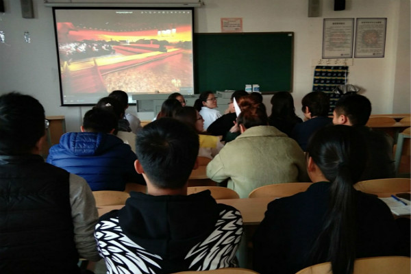 祝青山老师带领大家观看了专栏节目《榜样三》祝老师与同学一起观看视频同学之间互相分享交流心得
