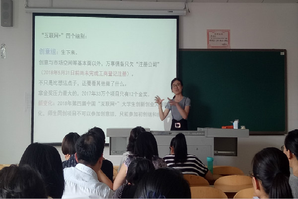 培训会上,秦春晶老师从创新创业教育入手,提出创新创业大赛作为深化创新创业教育改革的重要抓手,围绕“互联网+”大学生创新创业大赛的大赛宗旨和相关政策背景、项目共性分析、大赛优秀项目路径分析等方面进行了深度的解读与分析。