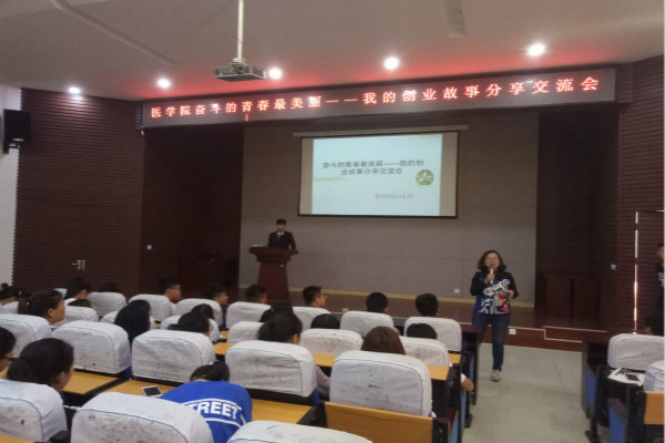 为了激发大学生创业热情,加强大学生对创业的认知,增加大学生的创业信心,营造更好的氛围,医学院于2018年9月21日下午两点在1007教室进行了一场“奋斗的青春最美丽——我的创业故事”分享交流会。此次讲座的主讲人是山东红兔传媒有限公司以及重庆吾推科技有限公司的执行董事和联合创始人胡玉军,山东柳竖脂商贸有限公司创始人张浩东,医学院就业指导老师张巧梅担任主持人,参加的班级为医学院本科护理1802班和本科护理1803班。