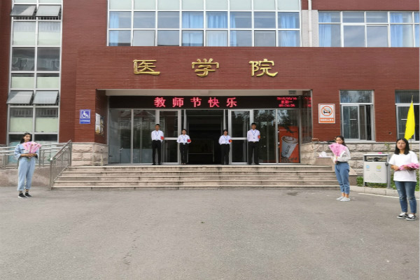 饮其流者怀其源,学其成时念吾师。 2018年9月10日上午8点,医学院庆祝教师节的活动正式开始,在老师们都准备到教室上课前,医学院基层团委学生会的学生代表们已在门口整齐地手捧鲜花迎接老师们的到来,待老师们陆续到学院时,首先迎接他们的是学院大门上方的led显示屏,上面显示着医学院全体学生向老师们送出的节日问候—— “ 经历了风雨,才知道您的可贵;走上了成功,才知道您的伟大,教师节快乐!”在老师们看到屏显时,同学们向前递给老师的是一枝枝芳香的康乃馨和一张张同学们亲手制作的贺卡。“老师,您辛苦了!祝您节日快乐!”听到同学们真挚的问候,接过同学们饱含情意的鲜花,老师们脸上写满了幸福的表情。接着,老师们走进学院大厅,一期精彩纷呈的庆祝教师节展板展现在他们的面前,展板上贴满了同学们对老师的崇敬和爱。